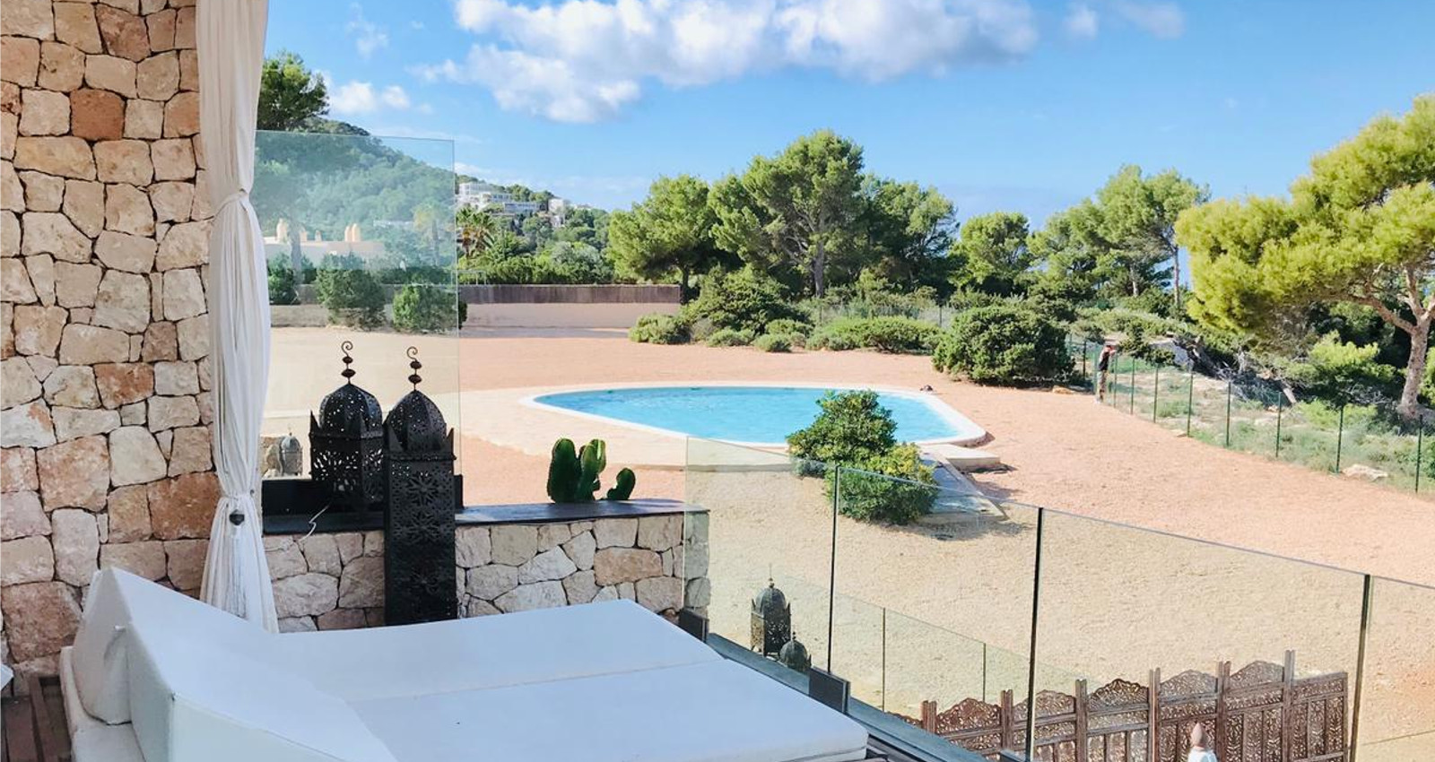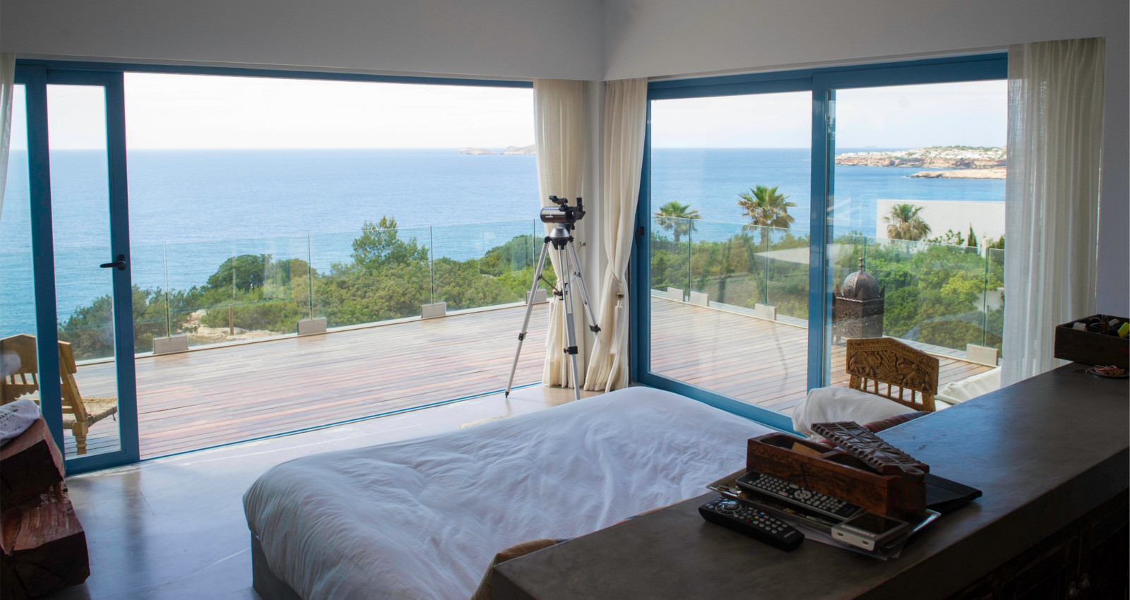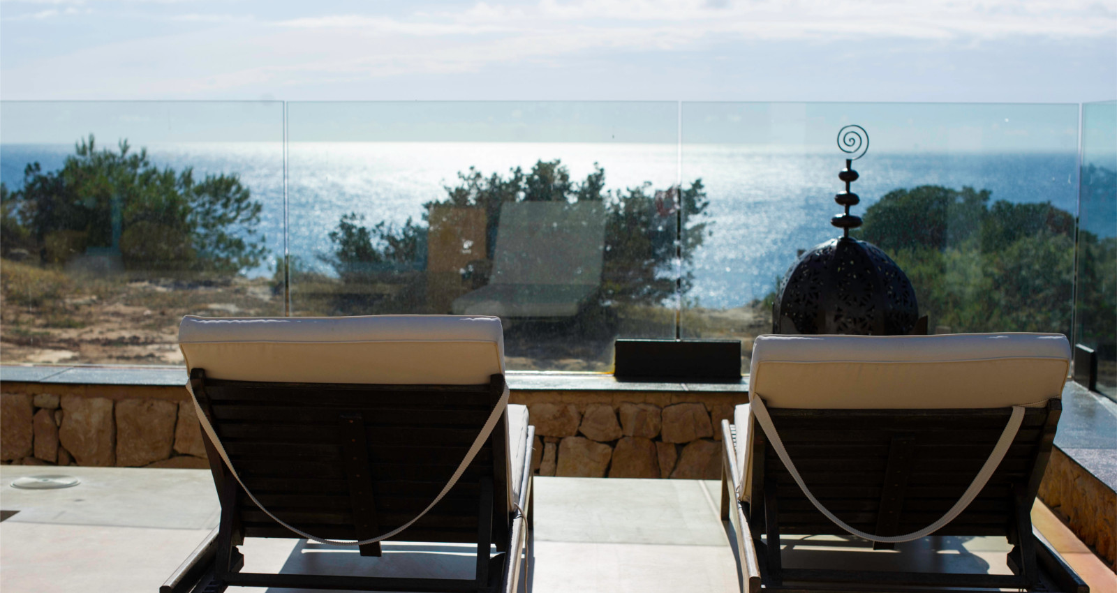 House with a large private swimming pool by the sea. It is next to Cala Tarida with spectacular views of the sunset in the most beautiful area of Ibiza. 600 m away from the beach, Can Vidal has all the comfort. One of the main attractions of the house is the swimming pool with sea and sunset views, the sun sets spectacularly over the Mediterranean Sea and the islands of S’Espartá. The two chill out terraces are perfect to enjoy your holidays in a unique and relaxed atmosphere by the sea.