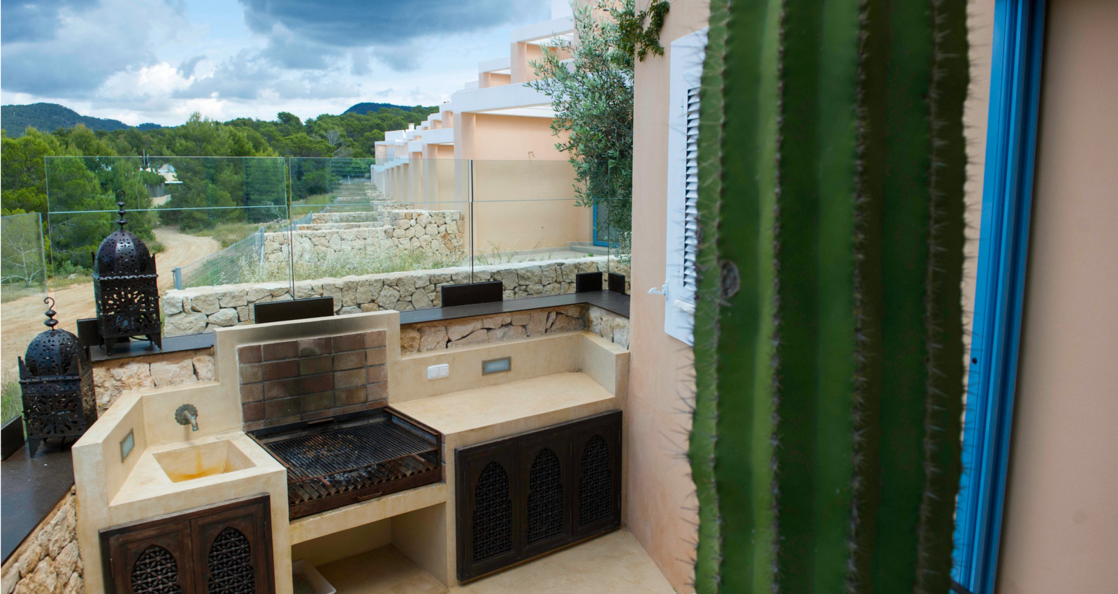 At 1.200 m distance there are shops, ATM’s, supermarkets and the marina Cala Corral. It is close to the sandy beach Cala Tarida (800m) with restaurants, beach shacks, sun beds and water sports possibilities, Cala Moli is 1 km away, also Cala Vedella and Cala Compte are close at 4 km. Cala Carbó and Cala D'Hort are 6 km away. The next town San Josep de Sa Talaia is 7 km, Ibiza is 18 km away. Nearby restaurants are: