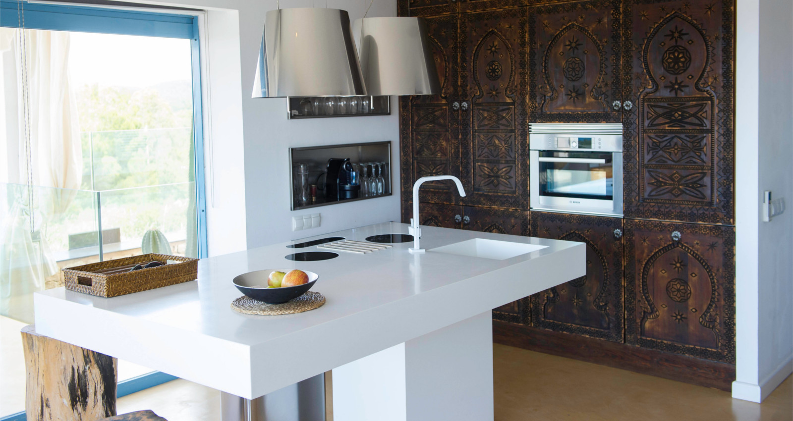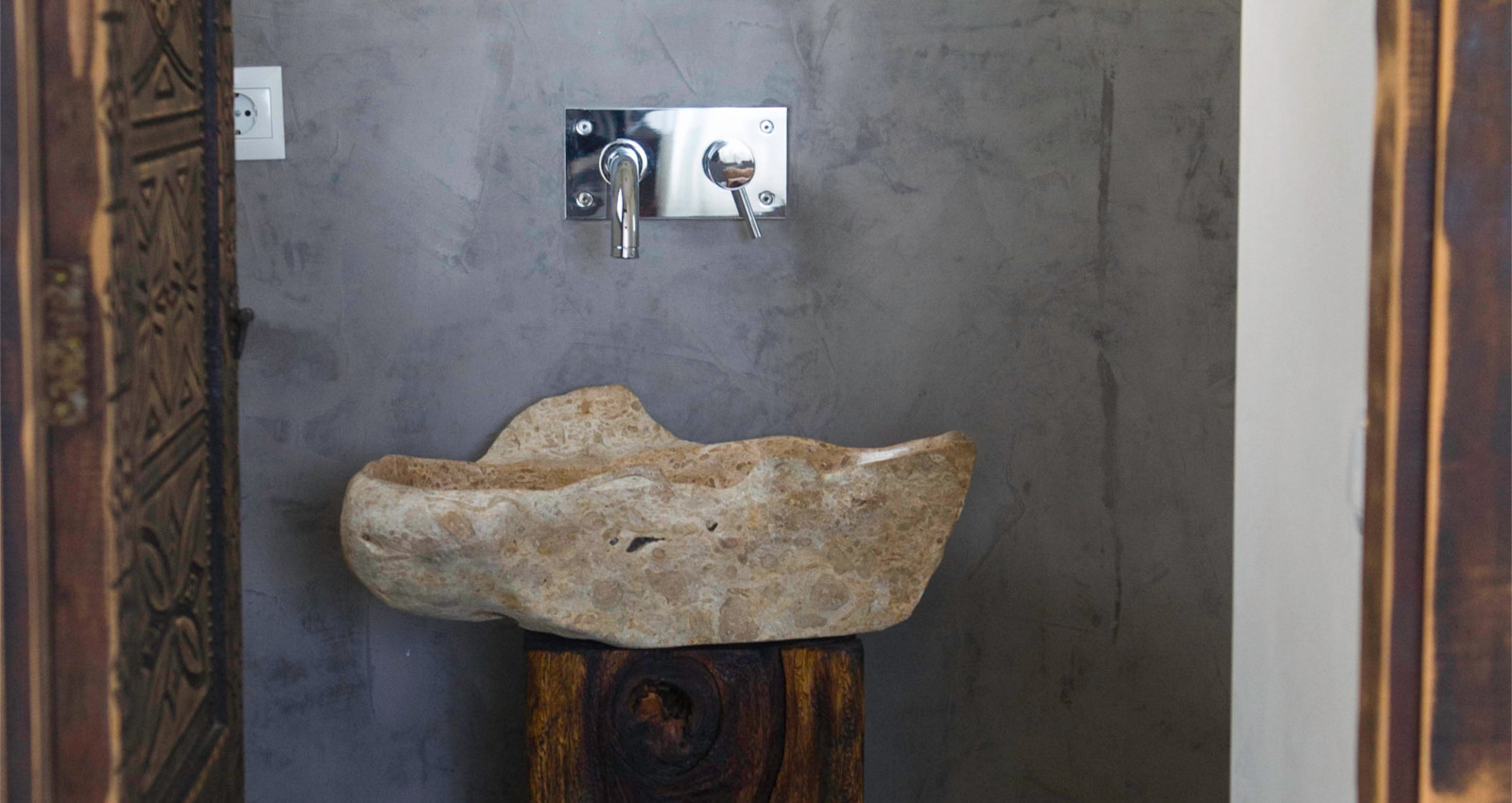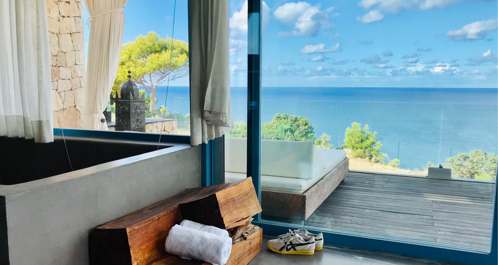 All the house interior is plastered with micro cement, the furniture is from Bali and Morocco. There is a plasma TV in the living room and suite, Wi-Fi and air conditioning in all the rooms. The kitchen is exceptional and fully equipped, with dishwasher, oven, fridge, microwave and a Nespresso coffeemaker.